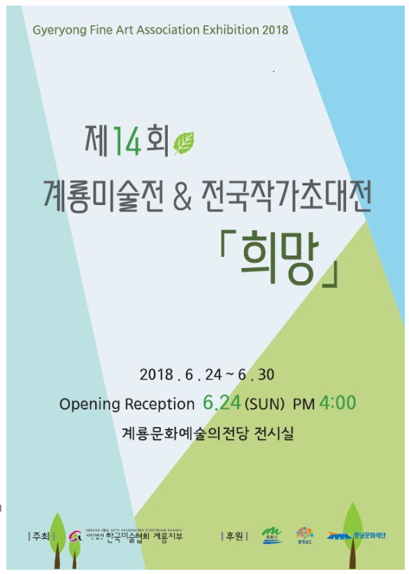 한국미술협회 계룡지부(지회장 김명중)가 창립 15주년을 맞아 오는 24일부터 30일까지 계룡문화예술의 전당 2층 전시실에서 '제14회 계룡미술전&전국작가 초대전'을 개최한다.