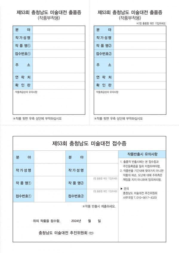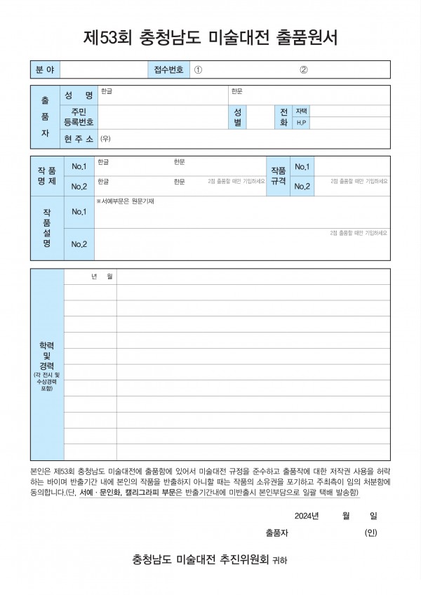 2024년 제 53회 충남미술대전 출품원서