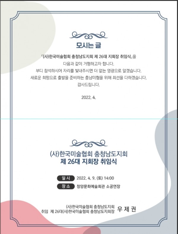- 2022년 제 26대 (사)한국미술협회 충청남도지회장 취임식 안내 -