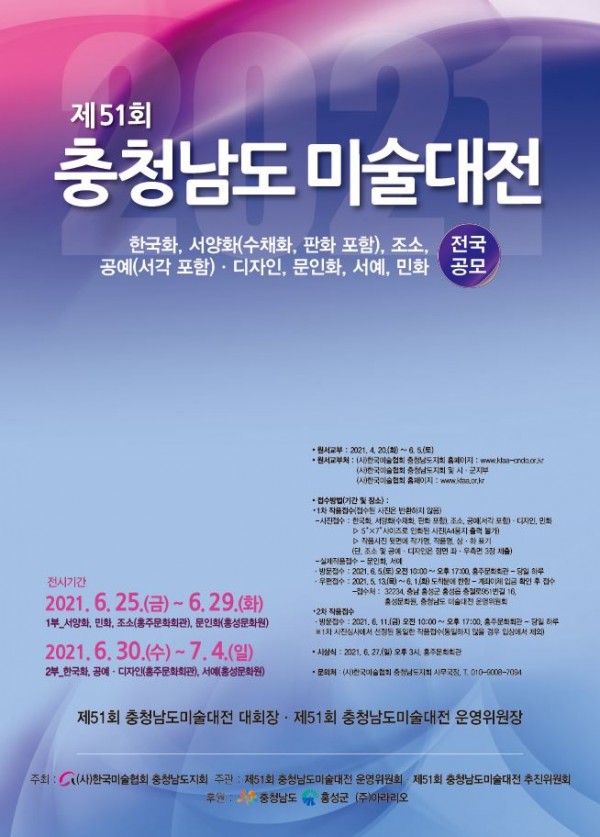 제51회 충청남도미술대전 미술부문 작품공모 및 전시회를 다음과 같이 공고합니다.