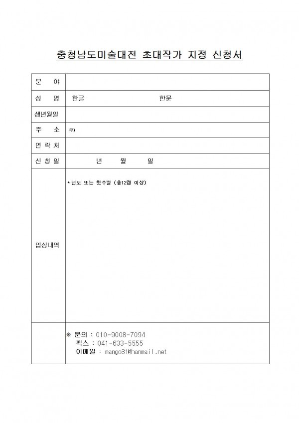 ▶ 제48회 충청남도미술대전 결과 총12점 취득하신 작가분은 초대작가 지정신청서를