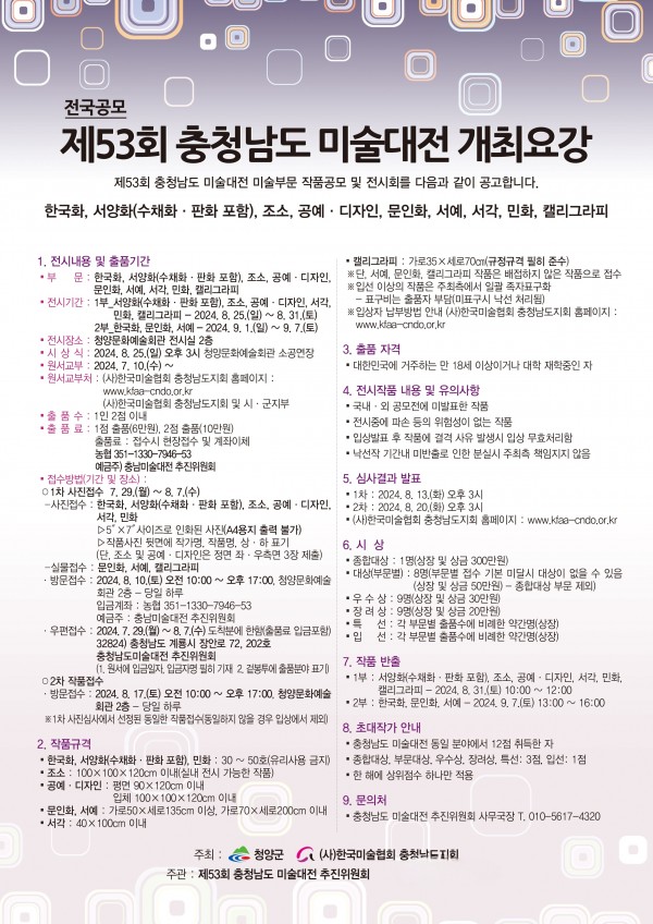 2024. 제53회 충청남도미술대전 개최요강